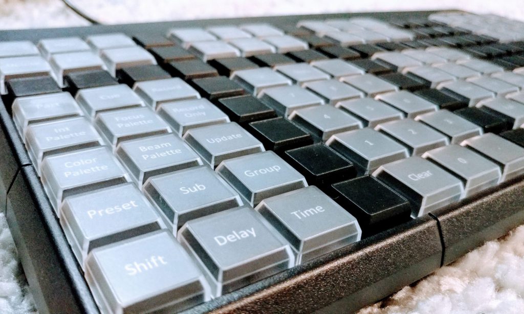 Probably the most important part of the console. The programmer is essential to getting efficient work done. Obviously, we can’t just use a normal keyboard, the keys are spaced oddly and would be hard to label. My solution was to use a Cherry Rows and Columns keyboard, meant for POS use, which lucky for us, is about 30$. When you order it, this is what comes in the box.