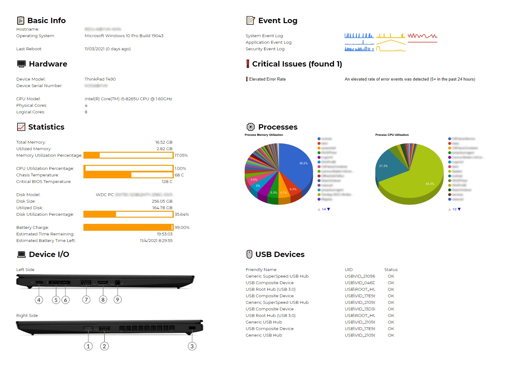 The genesis of this project began where all problems begin: the helpdesk. In the scramble to grow, this up-and-coming startup had begun issuing too many devices too quickly. An MDM had been implemented, to allow for basic remote monitoring, but no actionable diagnostic information was accessible from the platform. This created the repetitive dance of scheduling calls with customers to remote in, and manually chase down the important data needed to resolve a problem.