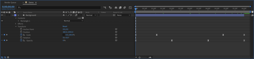 I would also highly recommend jumping into the graph editor for those keyframes, and add some curves! I like to approach my entrances by starting out fast, and slowly coming to a stop. I’ve done this with the opacity parameter as well.